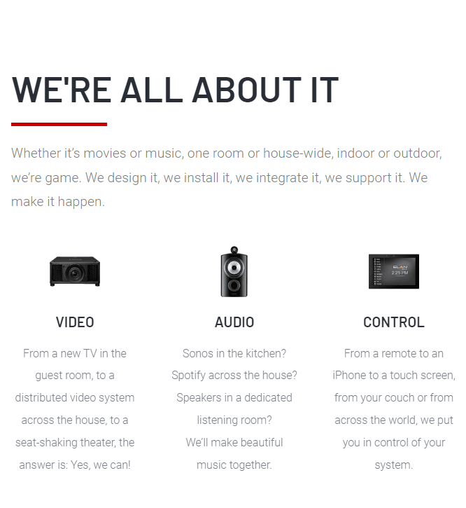 Providing you with a complimentary consultation, Get Wired Tec also offers design, installation and integration of some of the most important devices and systems throughout the house, meeting your specific needs and budget.